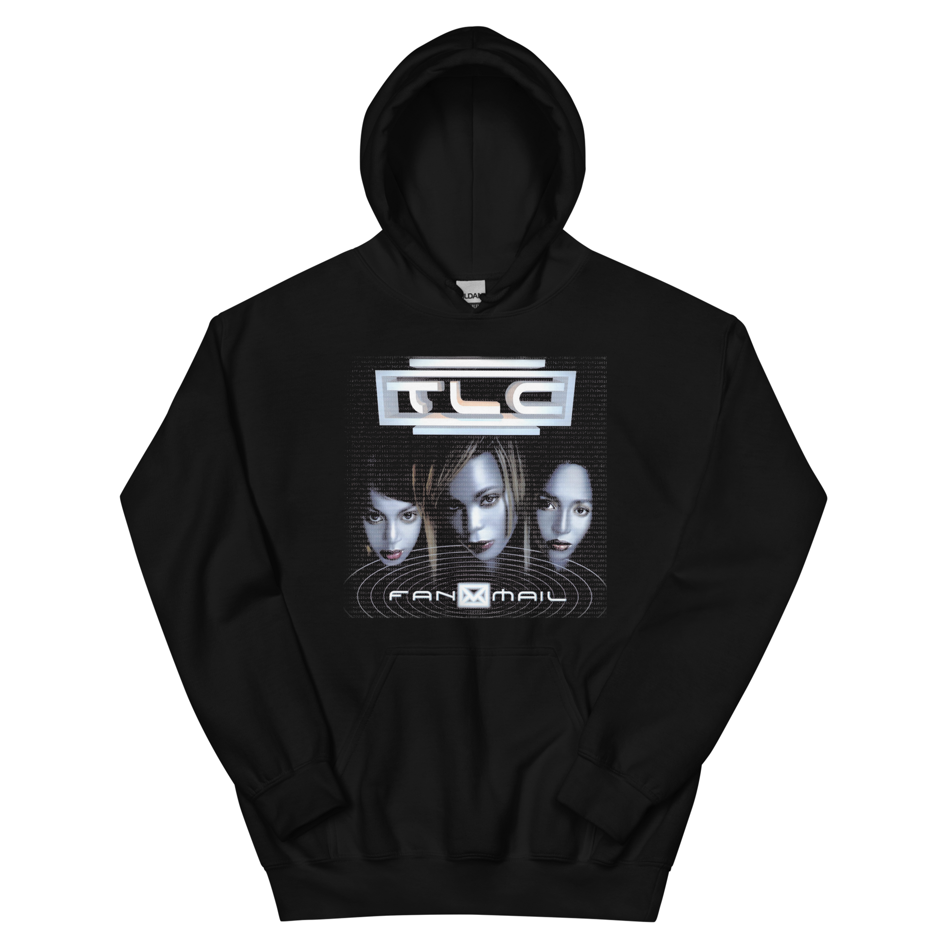Printed on a black unisex, 50/ 50 poly-cotton blend pullover hoodie.